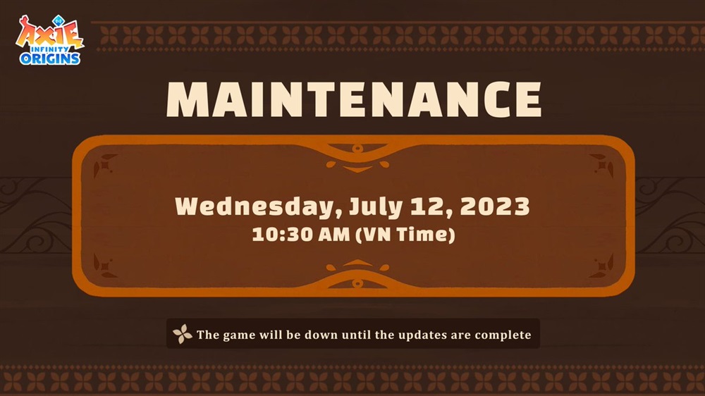 Axie Infinity will undergo scheduled maintenance for the Originals game on July 12th. This maintenance window will be utilized to implement necessary balance changes and other updates.