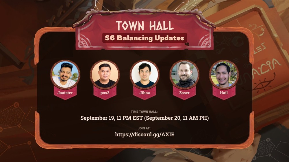 Axie Infinity will host a community call on Discord to discuss the balancing updates for Origins S6 on September 20th at 3:00 AM UTC.