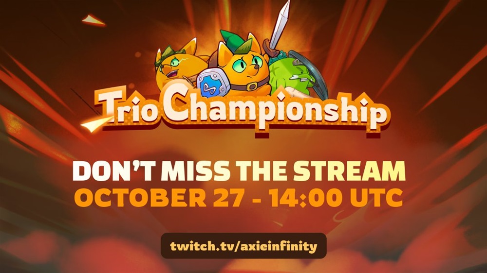 Axie Infinity is set to host the trio championships on Twitch on October 27th at 14:00 UTC.