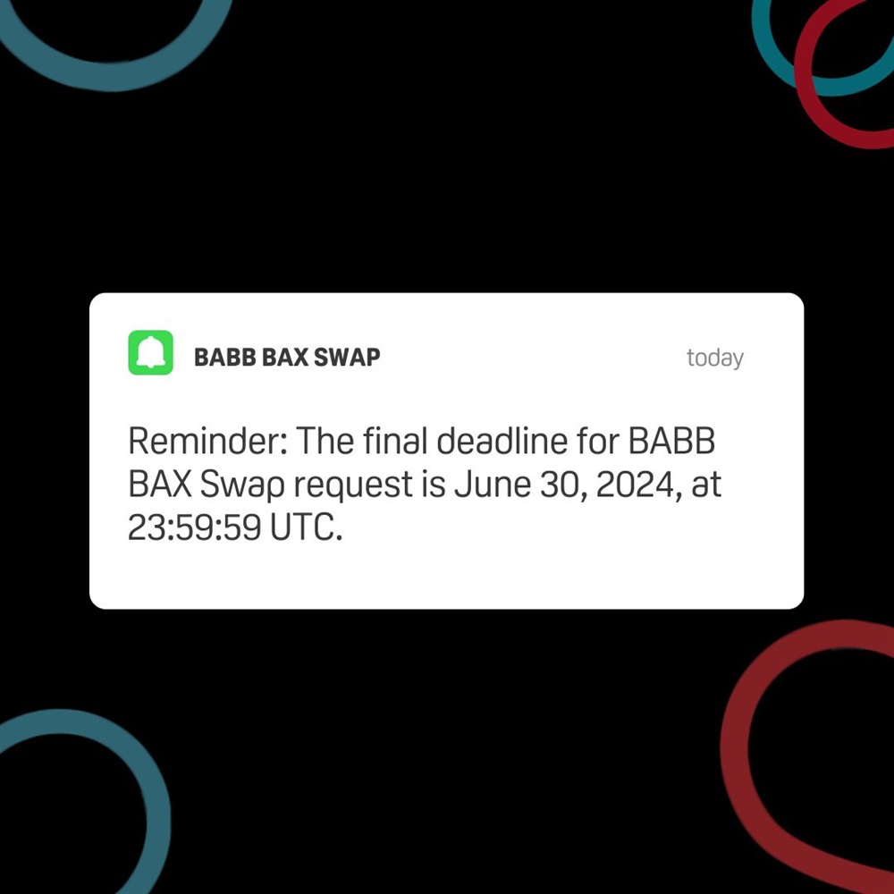 BABB has issued a reminder to all holders of OLD BAX who had a balance before 6 June 2022 23:59:59 UTC. The reminder is about the need to request an airdrop before the cut-off date of 30 June, 23:59:59 UTC.