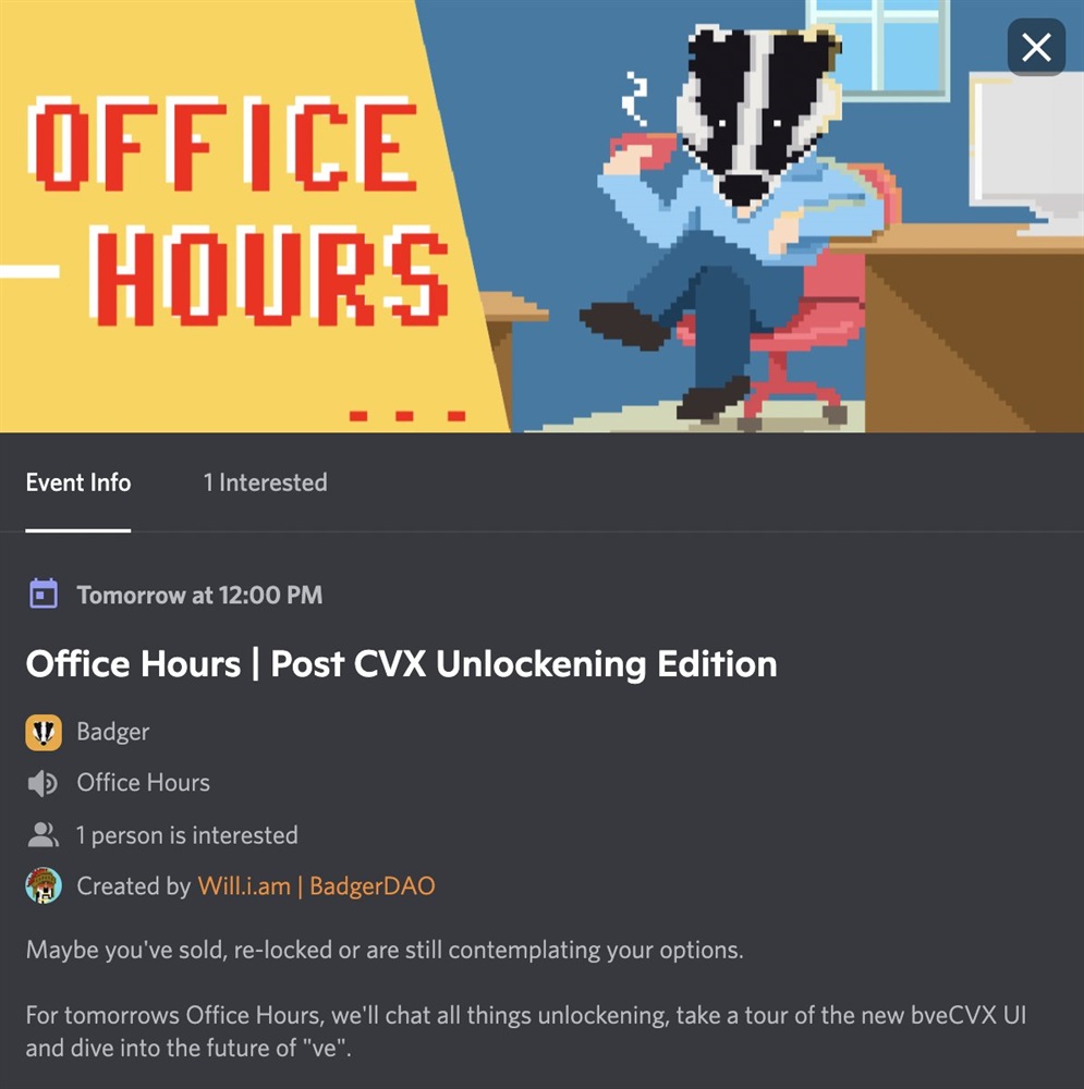 For tomorrows Office Hours, we'll chat all things unlockening, tour the new $bveCVX UI and dive into the future of "ve".