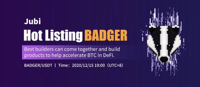 $BADGER will be listed on Jubi. DAO, build products to help accelerate BTC in DeFi.