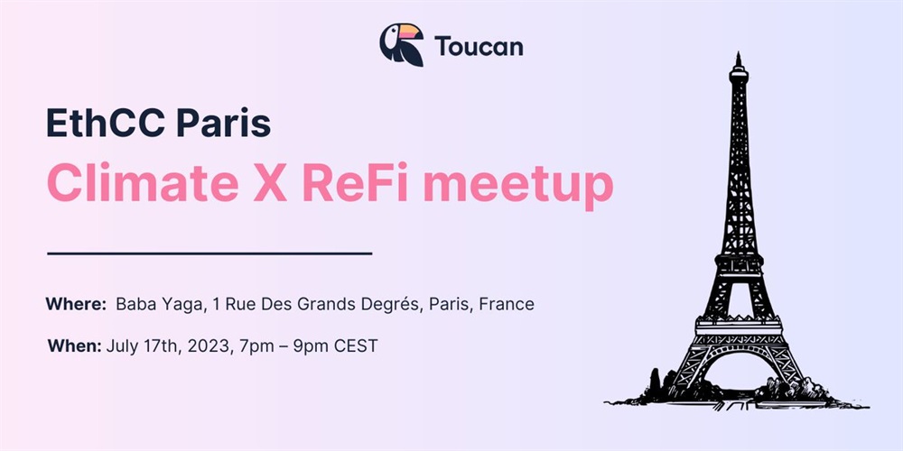 Toucan has announced an upcoming meetup in Paris, France during the EthCC week. The meetup, titled 'Climate X ReFi,' aims to bring together thought leaders, founders, and innovators to discuss ideas on how to scale refi in the context of climate change.