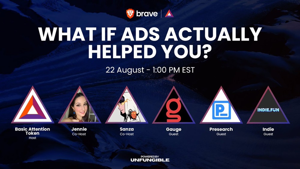 Basic Attention will host an AMA on X on August 22nd at 17:00 UTC to discuss advertising models that prioritize privacy, user rewards and utility.