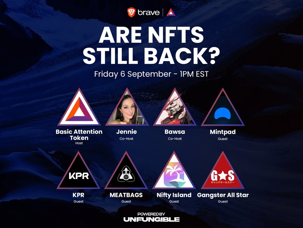 Basic Attention Token will host an AMA on X on September 6th at 5 PM UTC. The focus of the discussion will be on the current status and relevance of NFTs in the digital asset space.