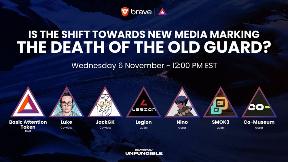 Basic Attention Token is organizing a discussion on the impact of decentralized media on the control of information flow and public trust, as well as the diminishing influence of traditional news outlets. The event is scheduled to occur on November 6th at 17:00 UTC.
