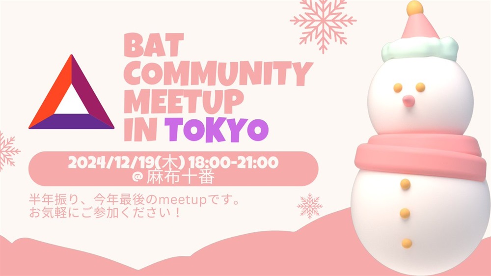 BAT fans of Japan 🇯🇵, join our upcoming Basic Attention Token (BAT) community meetup in Tokyo! ☃️