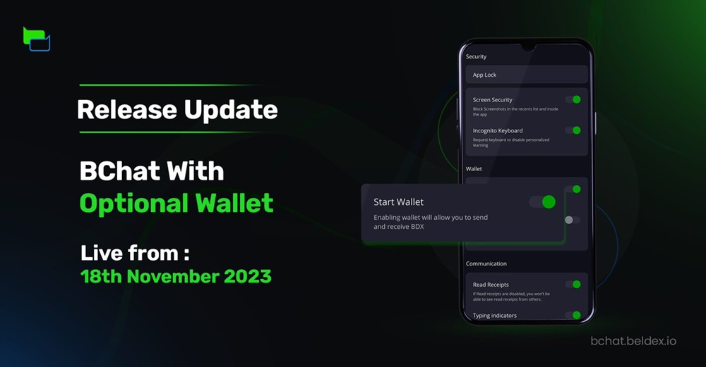 Beldex has announced an update to their Bchat app on November 18th. This new feature will provide users with the convenience of having a digital wallet within the app itself.