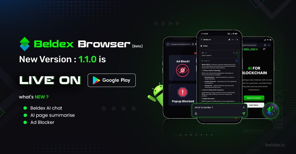 The new version includes Beldex AI Chat for AI-assisted browsing, an AI page summarizer for instant insights, and an ad blocker to remove advertisements.