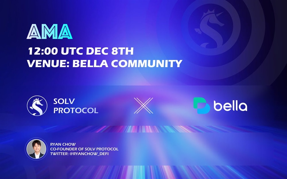 1/2🌟As our close friend @SolvProtocol's IVO is coming soon, @BellaProtocol will be hosting an AMA with the cofounder of #SolvProtocol, @RyanChow_DeFi tomorrow, 12/08 at 12:00 UTC in Bella's telegram channel 👉t.me