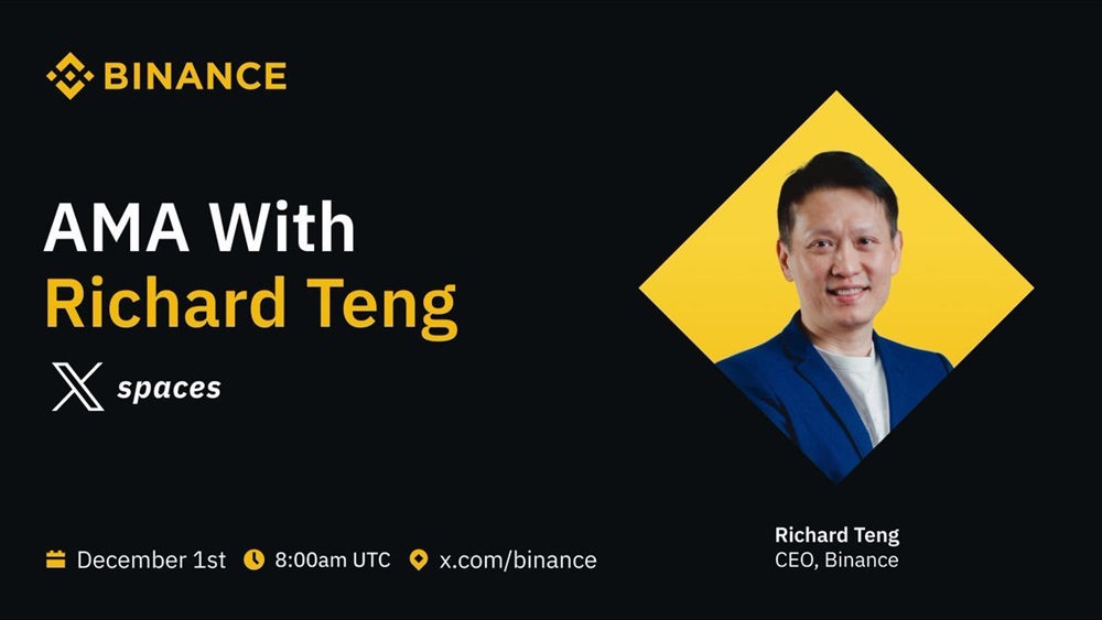 Binance Coin will host an AMA on X with the new CEO, Richard Teng, on December 1st at 8 am UTC.