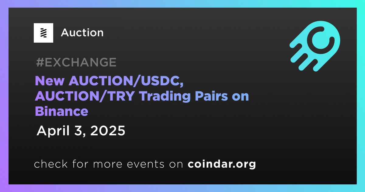 Binance will add new trading pairs AUCTION/USDC, AUCTION/TRY on April 3rd.