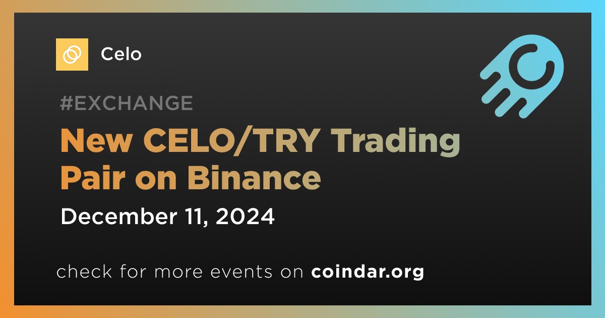 Binance will open trading for the CELO/TRY trading pair on December 11th at 8:00 UTC.