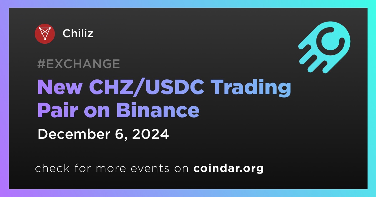 Binance will open trading for the CHZ/USDC trading pair on December 6th at 8:00 UTC.