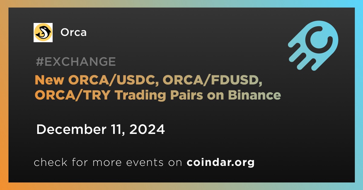 Binance will open trading for the ORCA/USDC, ORCA/FDUSD, and ORCA/TRY trading pairs on December 11th at 8:00 UTC.