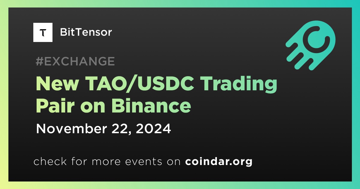 Binance will open trading for the TAO/USDC trading pair on November 22nd at 8:00 UTC.