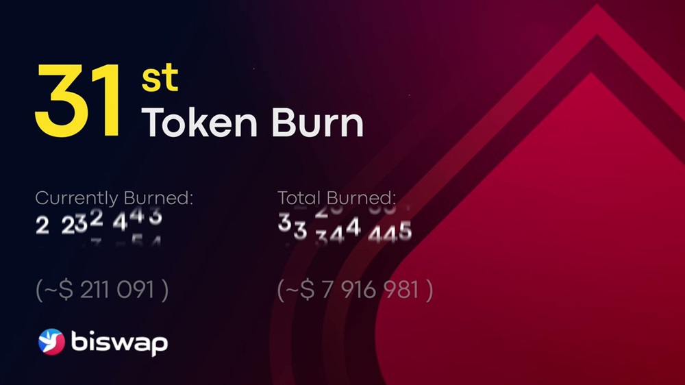 1 152 906 BSW tokens or ~ $211 091.32 are burned for the 31st time