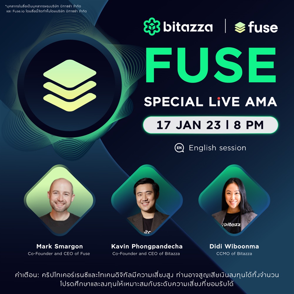 ชาวบิทาซซ่าปักหมุดลงปฏิทินกันไว้ได้เลย! วันอังคารที่ 17 มกราคม 2566 เวลา 20.00 น. ใน Special Live AMA: FUSE ที่ Bitazza Thailand ทุกช่องทาง มาร่วมพูดคุย ถามตอบกันสดๆ กับเจ้าของโปรเจกต์ตัวจริงเสียงจริง คุณ @smargon ผู้ร่วมก่อตั้งและประธานเจ้าหน้าที่บริหารของ @Fuse_network