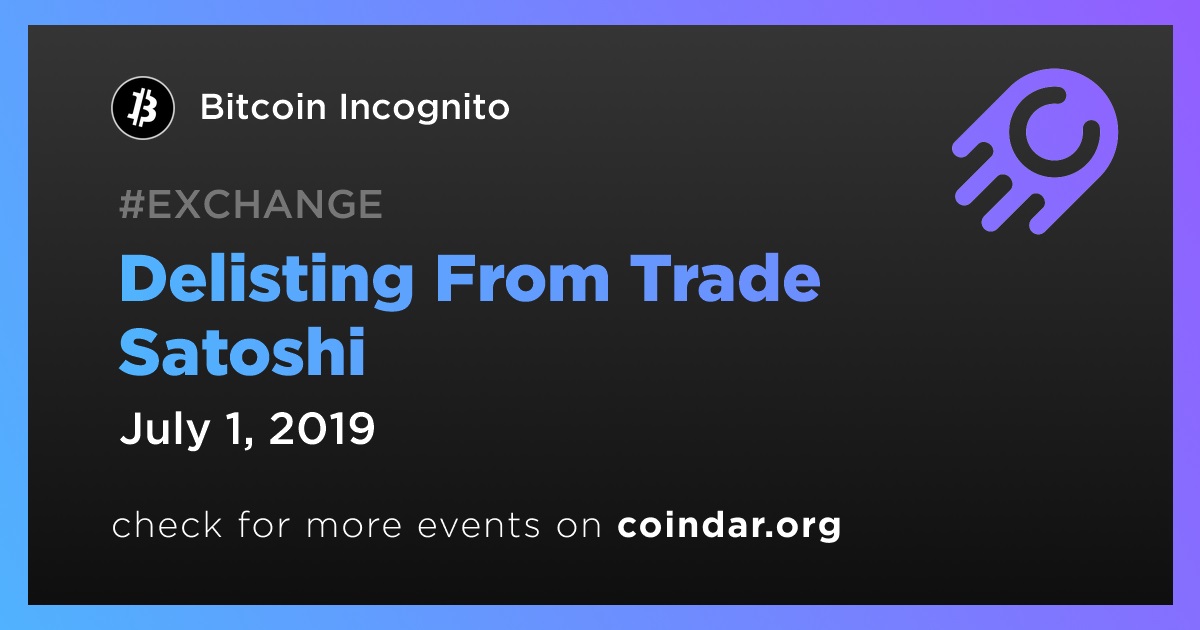 Bitcoin Incognito XBI: Delisting From Trade Satoshi