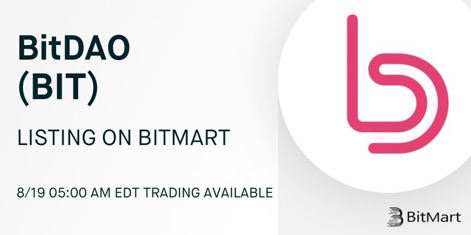 BitMart will be the 4th largest among the exchanges where BitDAO is listed