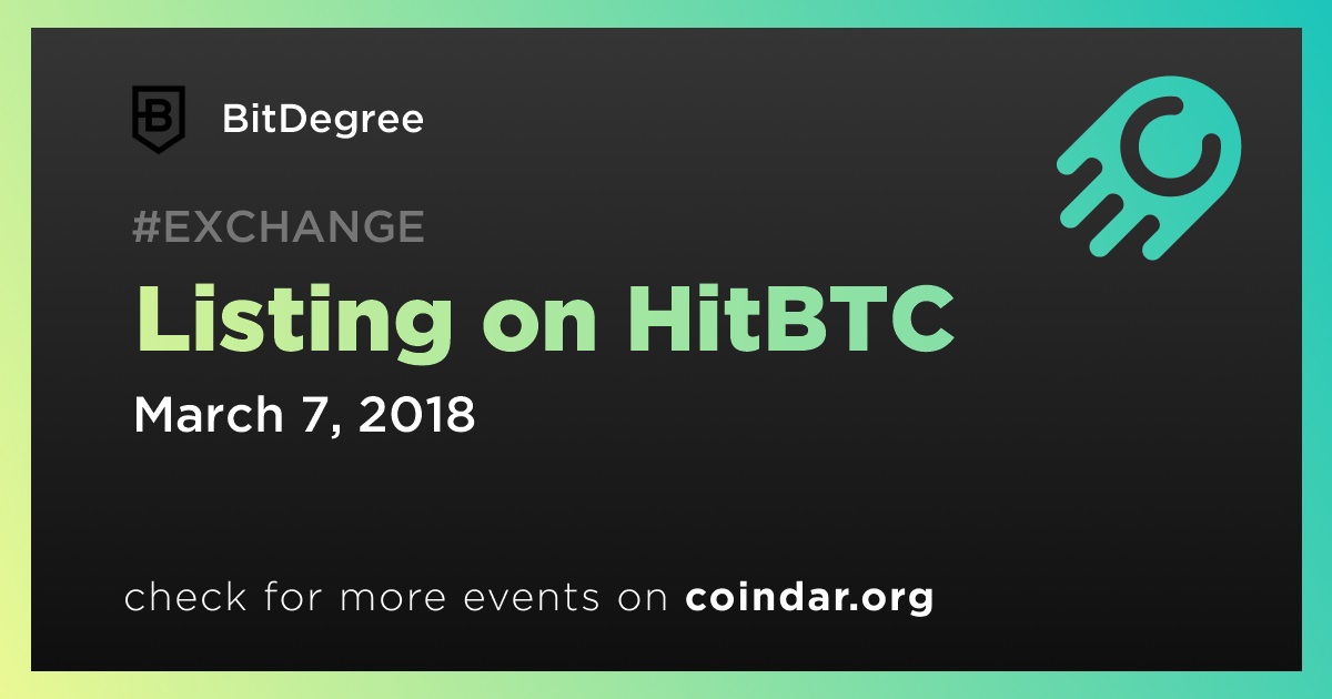 BitDegree tokens are now available to trade on the HitBTC exchange platform. https://t.co/oUzhXUOX5j.