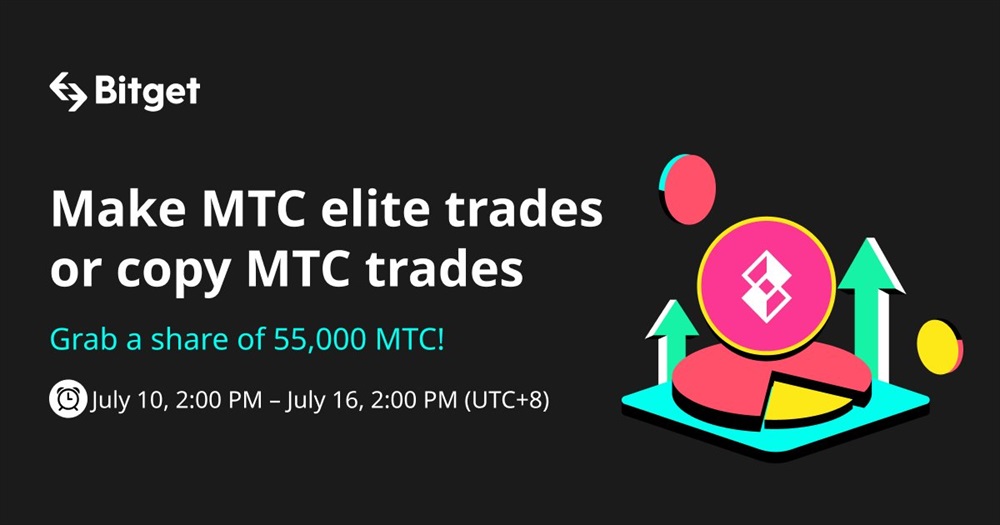 Bitget announces that MTC is now available on Bitget spot copy trading. Participants can share a prize pool of 55,000 MTC for copy-trading. The event will be finished on July 16th.