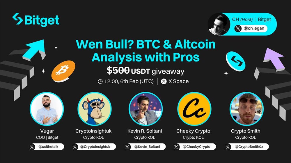 Bitget Token will host an AMA on X on February 6th at 12:00 UTC. The event will feature professional analysis of Bitcoin and altcoins. Additionally, there will be a giveaway of 500 USDT, which will be distributed among 10 winners.
