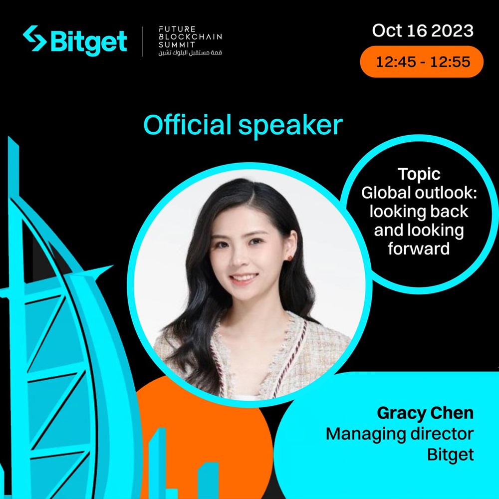 Bitget Token’s representative, Gracy Chen, is scheduled to speak at the Future Blockchain Summit in Dubai on October 16th.