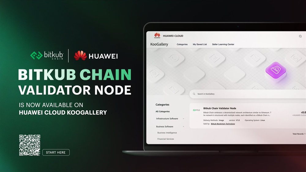 Bitkub Coin has been integrated into Huawei Cloud KooGallery. This integration allows Bitkub Chain users to activate the POS Validator Node through the platform. The Validator Node is a significant node on the Bitkub Chain.