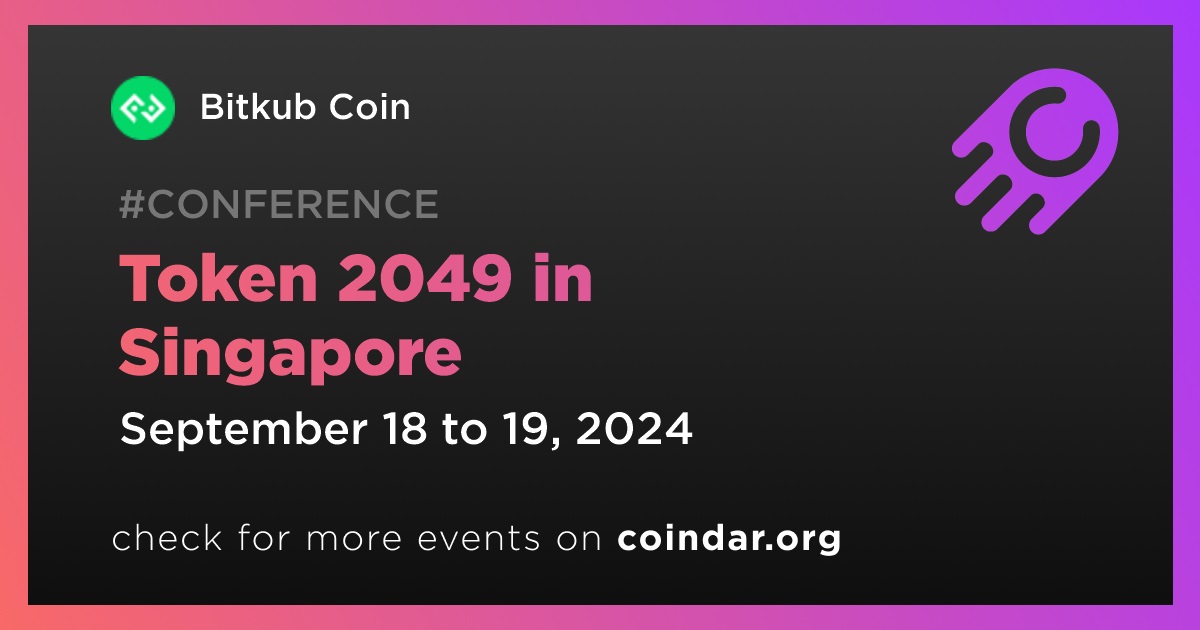 Bitkub Coin’s management team, including chief executive officer Passakorn Pannok, will be present at the Token 2049 conference in Singapore on September 18th-19th.