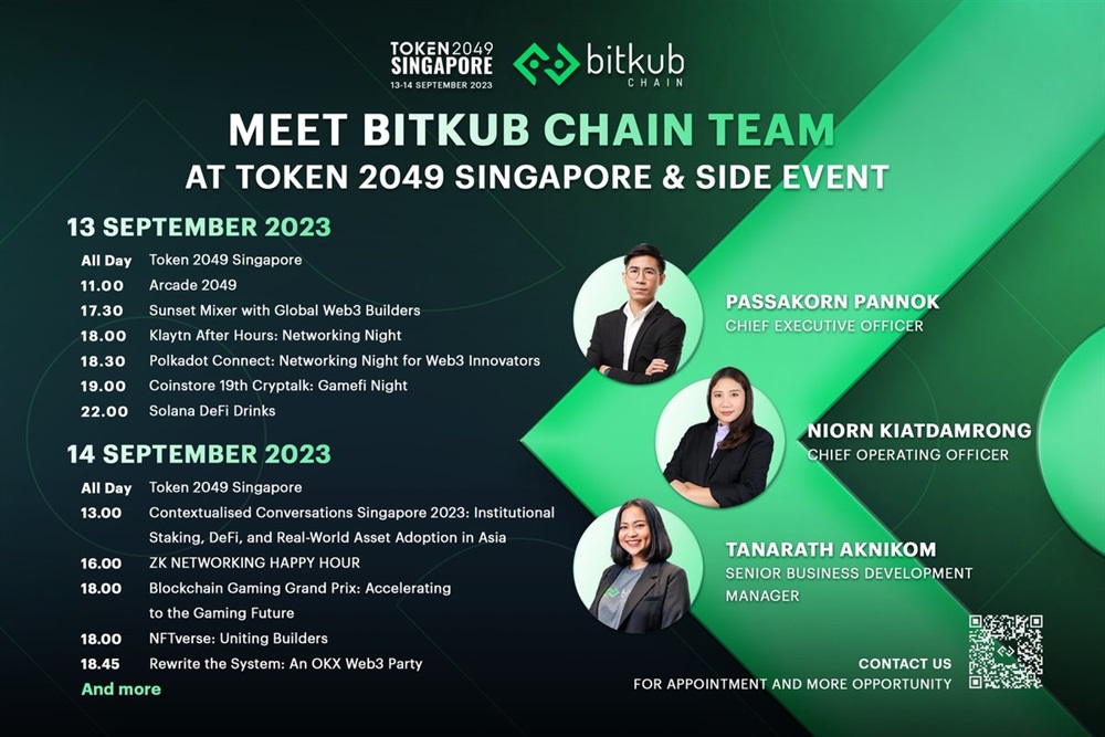 🚀 Meet the Bitkub Chain team at TOKEN 2049 Singapore, the largest gathering of Crypto, Blockchain, and Web3 enthusiasts in Asia, taking place on september 13-14, 2023, at Marina Bay Sands.