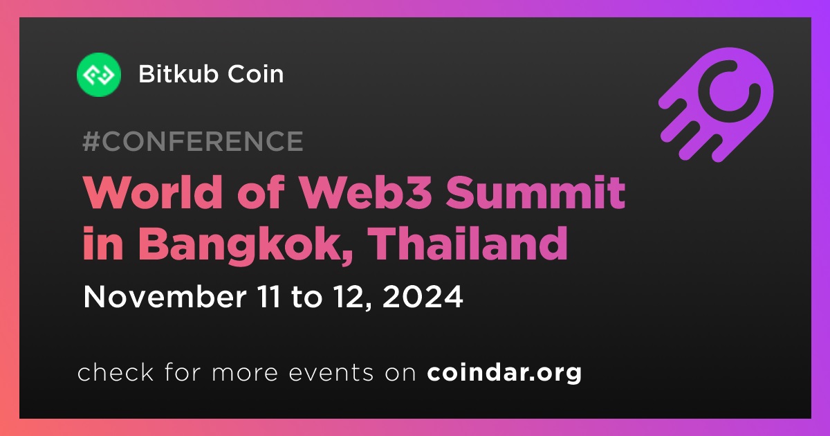 Bitkub Coin will be represented at the World of Web3 Summit in Bangkok from November 11th to 12th.
