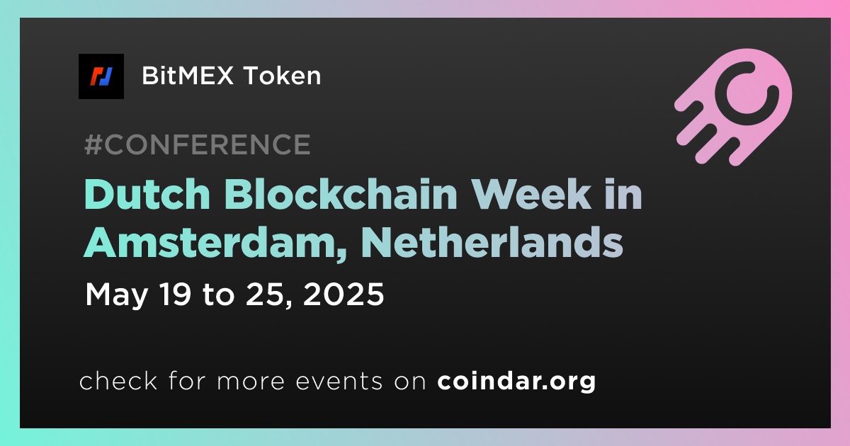 BitMEX Token reports that its chief executive officer is scheduled to speak at Dutch Blockchain Week, which will take place in Amsterdam on May 19th-25th.