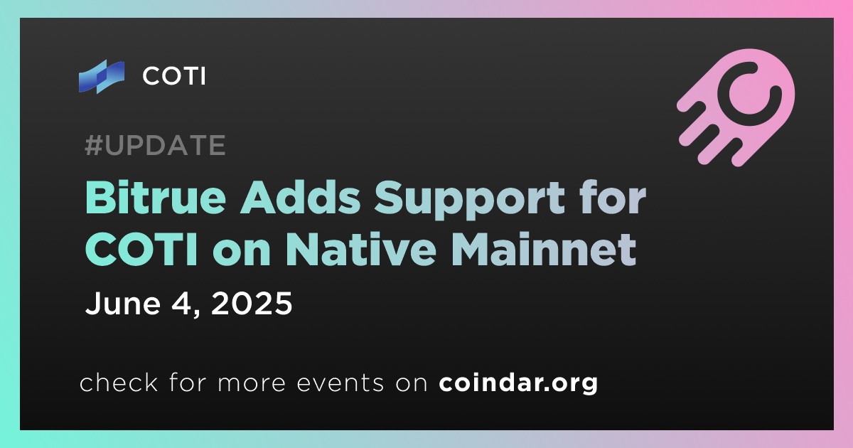Bitrue has officially enabled deposits and withdrawals for COTI on the COTI mainnet. This integration marks a key milestone for COTI’s ecosystem as it transitions to its native infrastructure.
