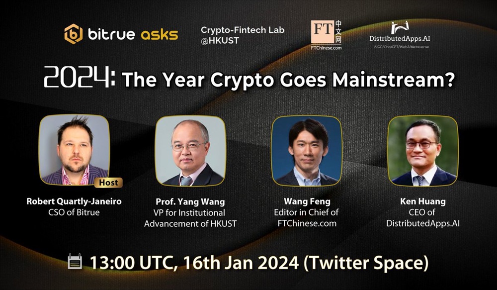 Bitrue Coin will host an AMA on X on January 16th at 13:00 UTC. The discussion will revolve around the topic “2024: The year crypto goes mainstream?”