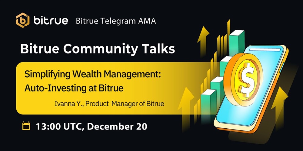 Bitrue Coin is set to host a community talk on Telegram on the topic of simplifying wealth management, with a focus on auto-investing. The event will take place on December 20th at 13:00 UTC.