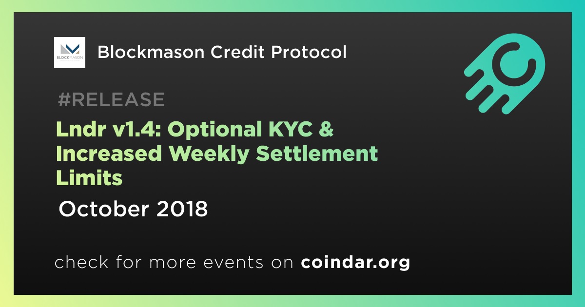 Blockmason Credit Protocol BCPT: Lndr v1.4: Optional KYC & Increased Weekly Settlement Limits