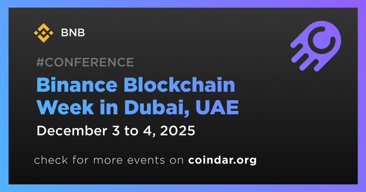 BNB reports that the next Binance Blockchain Week is scheduled for December 3rd-4th in Dubai. TThe event promises an upgraded experience building on the momentum of previous editions, gathering global leaders, developers, and enthusiasts from the blockchain space.