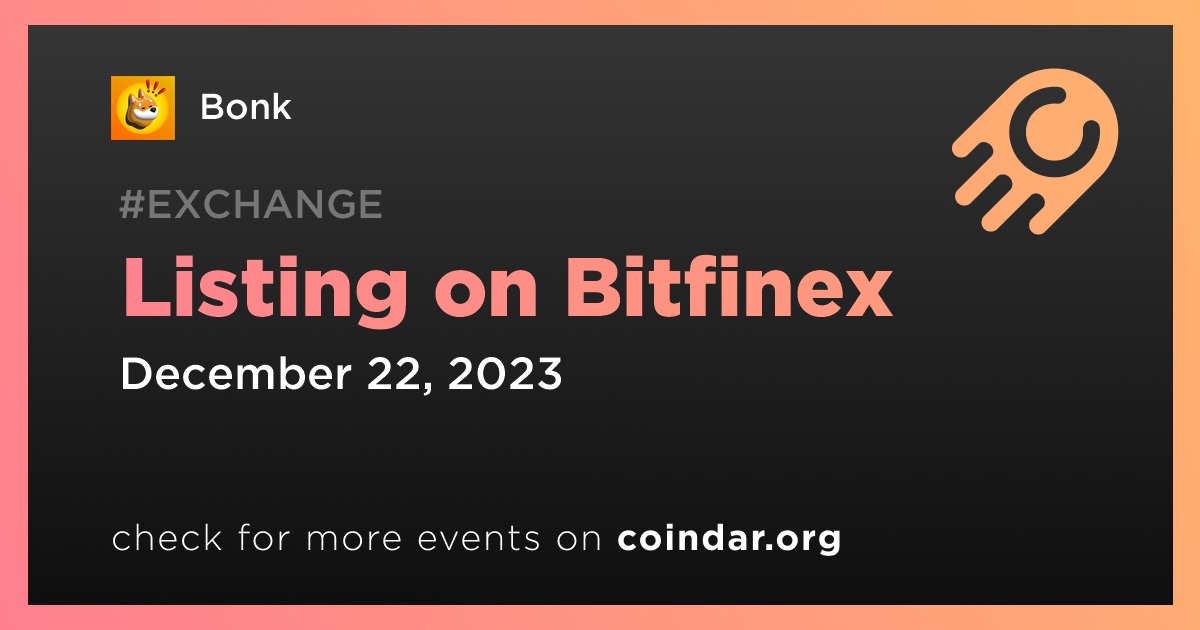 Bitfinex will list Bonk (BONK) on December 22nd.