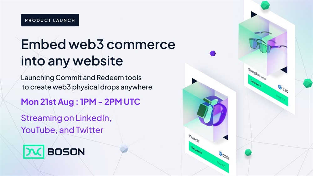Boson Protocol will host an AMA on Twitter on August 21st. During the event, there will be discussed the Embed Anywhere product launch.