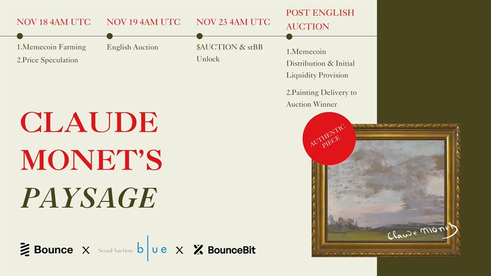 Bounce Brand has announced an auction for a unique digital artwork inspired by Claude Monet’s paintings. The event, scheduled for November 19 at 4:00 UTC, is a collaboration between SeoulAuction Blue and Bouncebit. Organizers promise to merge classic art with innovative blockchain technology.