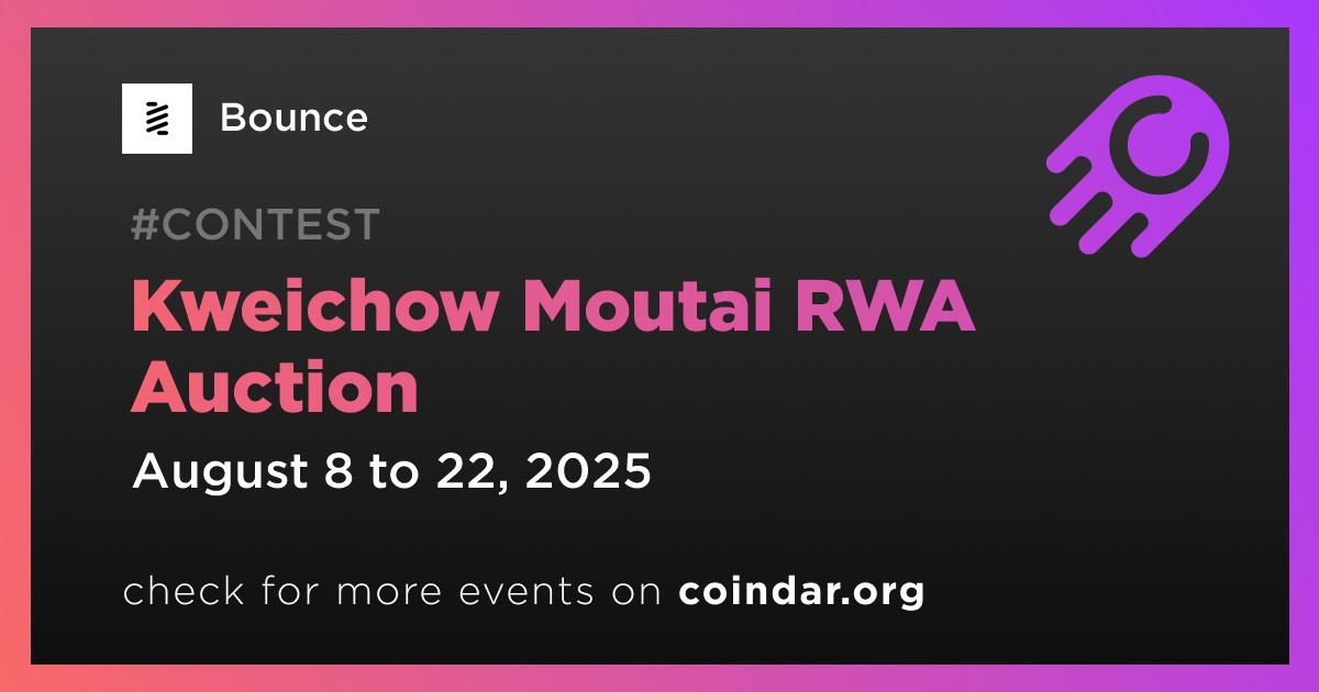 Bounce will launch the Kweichow Moutai real-world asset auction on August 8 at 13:00 UTC on BNB Chain, with a starting price of 20 AUCTION tokens. The auction follows the English format, with bid increments between 15 and 30 AUCTION, and will close no later than August 22 unless no new bids are placed within six hours.