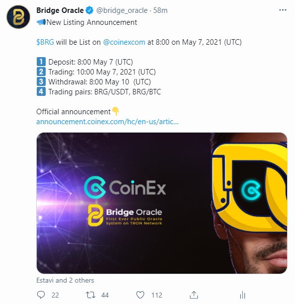 BRG will be List on CoinEx at 8:00 on May 7, 2021 (UTC).