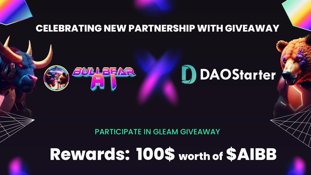 BullBear AI has announced a partnership with DAOStarter. This collaboration is marked by a giveaway, with rewards amounting to $100 worth of AIBB.