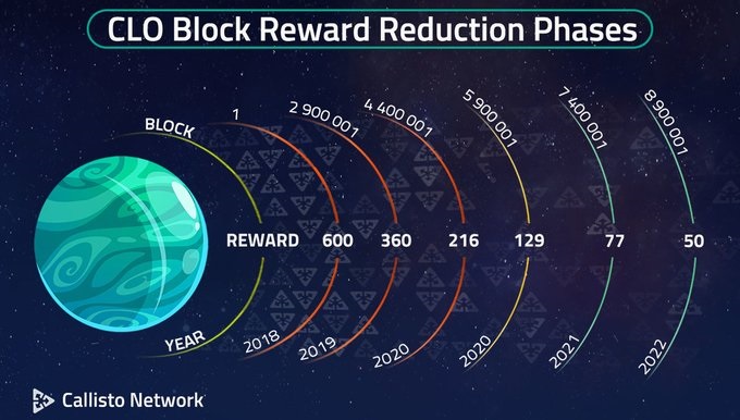 Callisto Network adheres to a strict monetary policy, whose main purpose is a progressive decrease of the $CLO block reward 📉