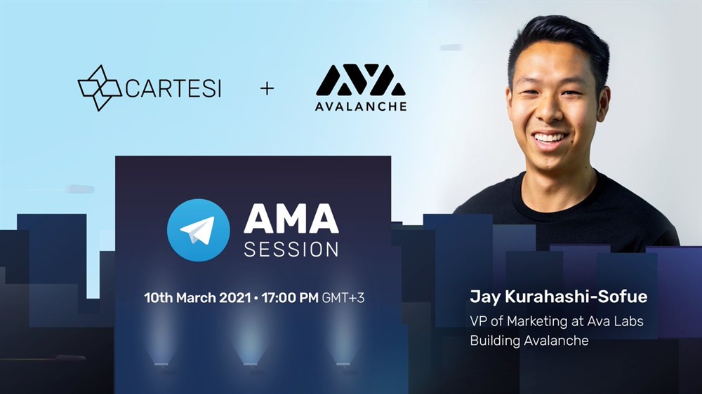 Join us on March 10 at 2:00 PM UTC for an AMA with @jayks17, VP of Marketing at @avalancheavax in the #Cartesi Telegram community!