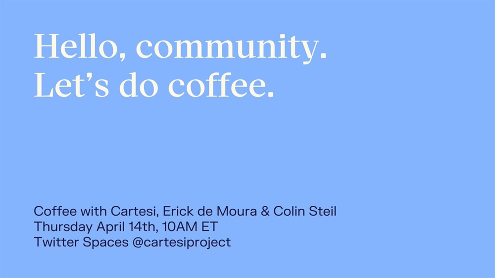 Want to grab coffee with #Cartesi co-founders @erickdemoura & @colinsteil? Make sure to tune in tomorrow at 10 AM ET on Twitter Spaces ➡️ bit.ly