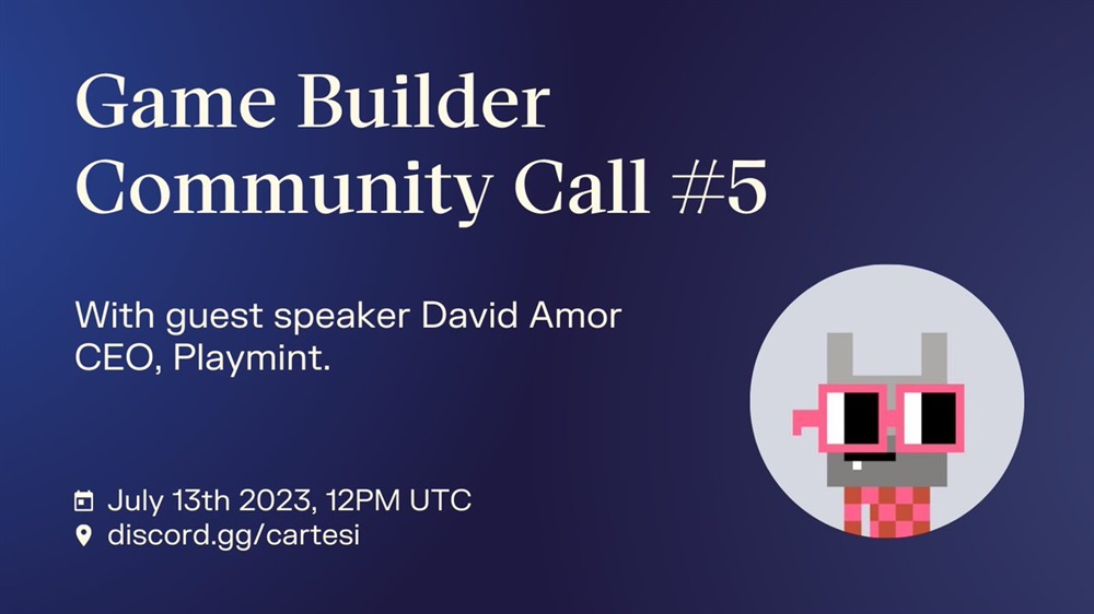 On July 13th, Cartesi is scheduled to conduct a community call on Discord. They have invited guest speaker David Amor, CEO of Playmint, to share his insights on the topic of Web3 gaming.