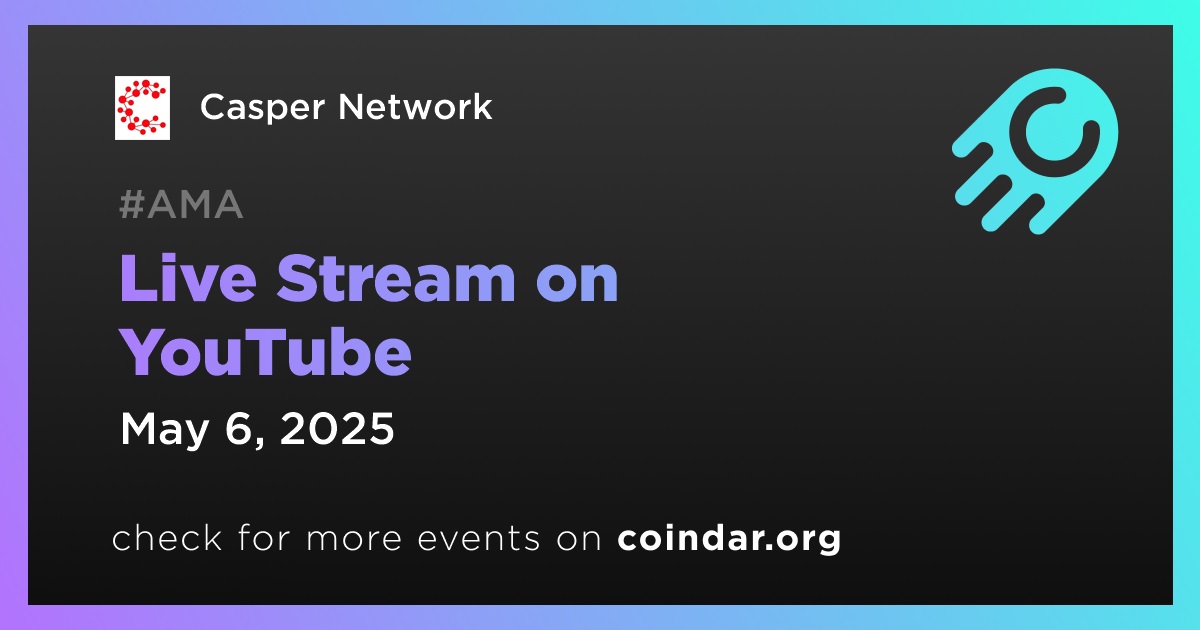 Casper Network will host a live stream on YouTube on May 6th at 12:25 UTC to present the launch of Casper 2.0, featuring chief technology officer Michael Steuer, chief executive officer Matt Schaffnit and members of the core development team.