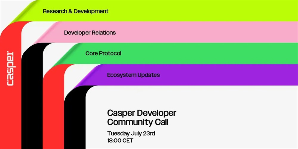 Casper Network will host a community call on July 23rd at 4 PM UTC. The call will cover the latest developments and updates across various areas of Casper, including R&D, developer relations, Casper Core protocol, and ecosystem.